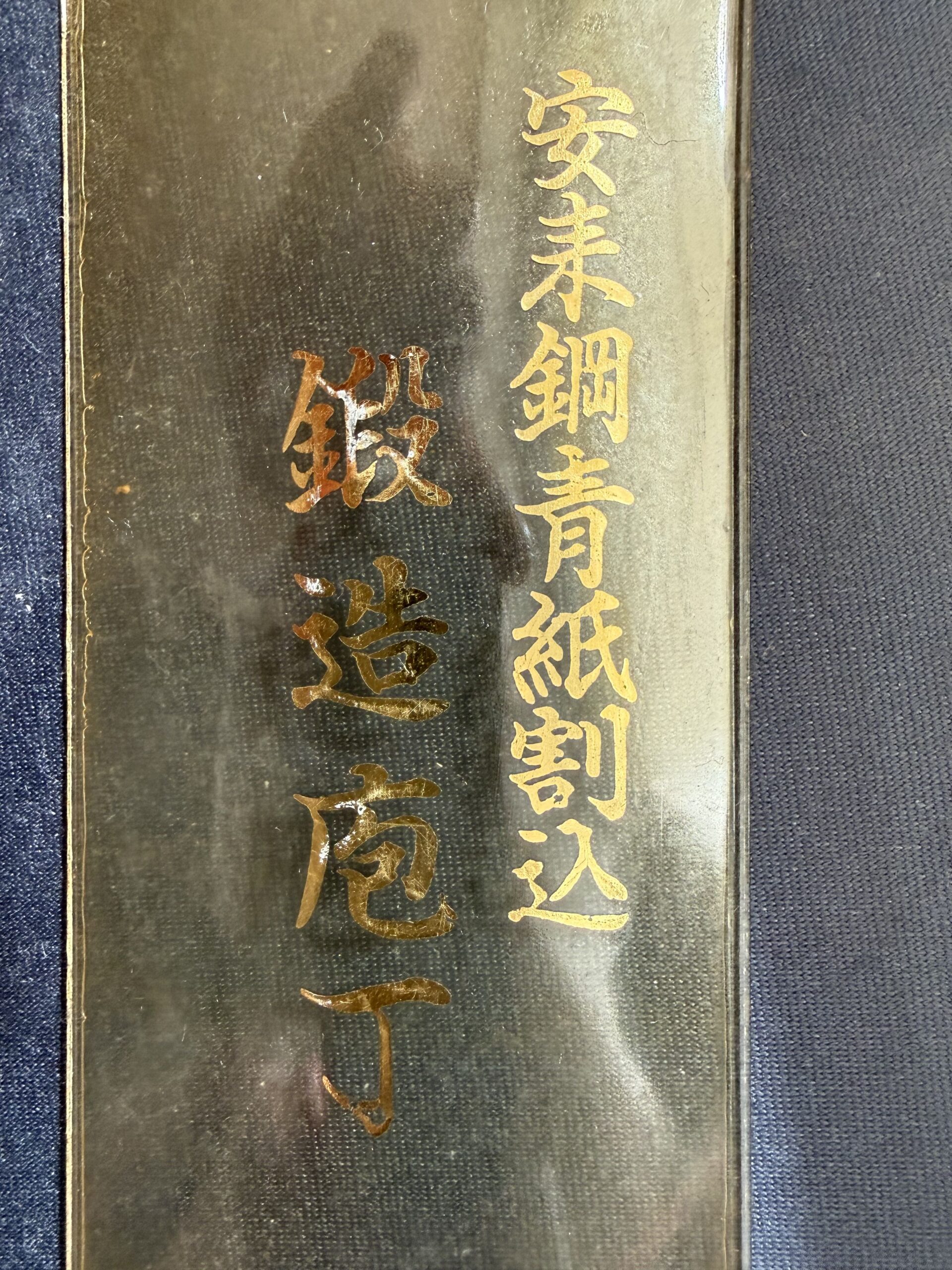 安来鋼青紙割込 (Yasuki-hagane Aogami warikomi) – Yasuki plienas, Aogami (Blue Paper Steel), laminuota (įlieta) konstrukcija