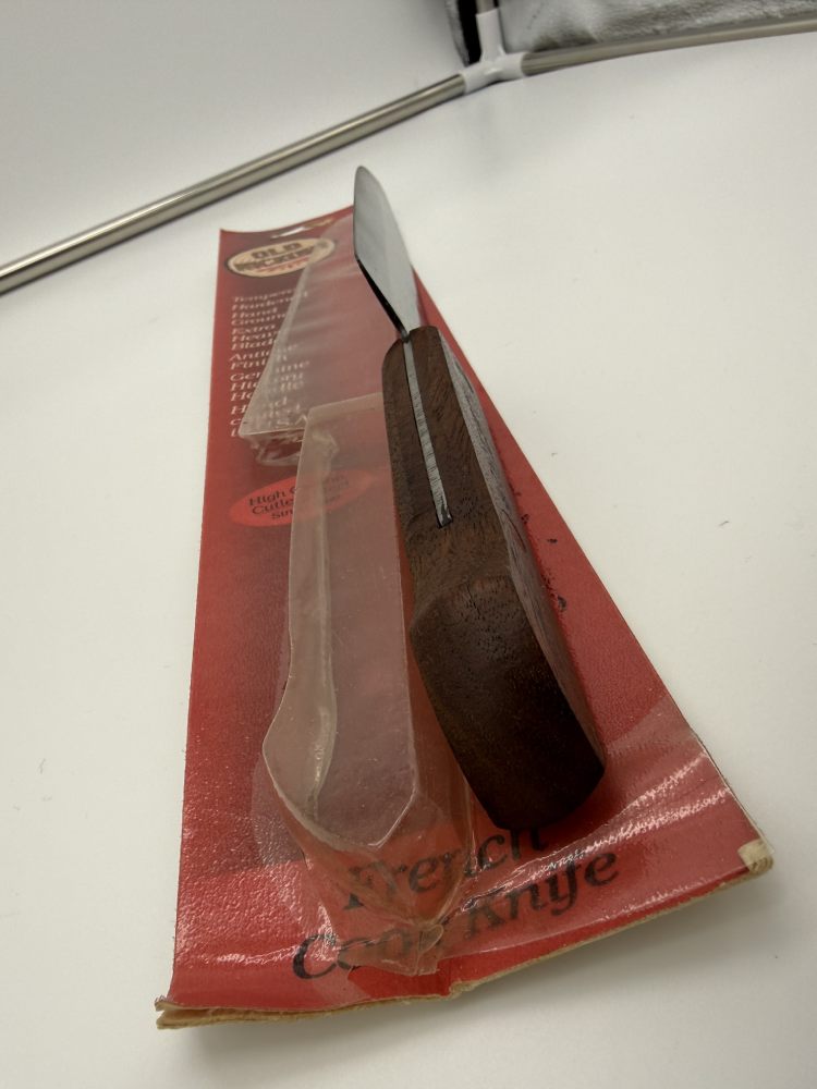 Peilis nenaudotas, išlaikytas kolekcinėje būklėje. Buvo atsargiai išpakuotas tik tam, kad būtų pašalinta paviršinė korozija ir geležtė profesionaliai pagaląsta natūraliais Arkansas akmenimis, išsaugant originalų geometrijos profilį ir suteikiant jam aštrų, skustuvo lygio pjūvį. Tai retas atvejis, kai vintažinis įrankis išlieka autentiškas ir kartu praktiškai paruoštas darbui.