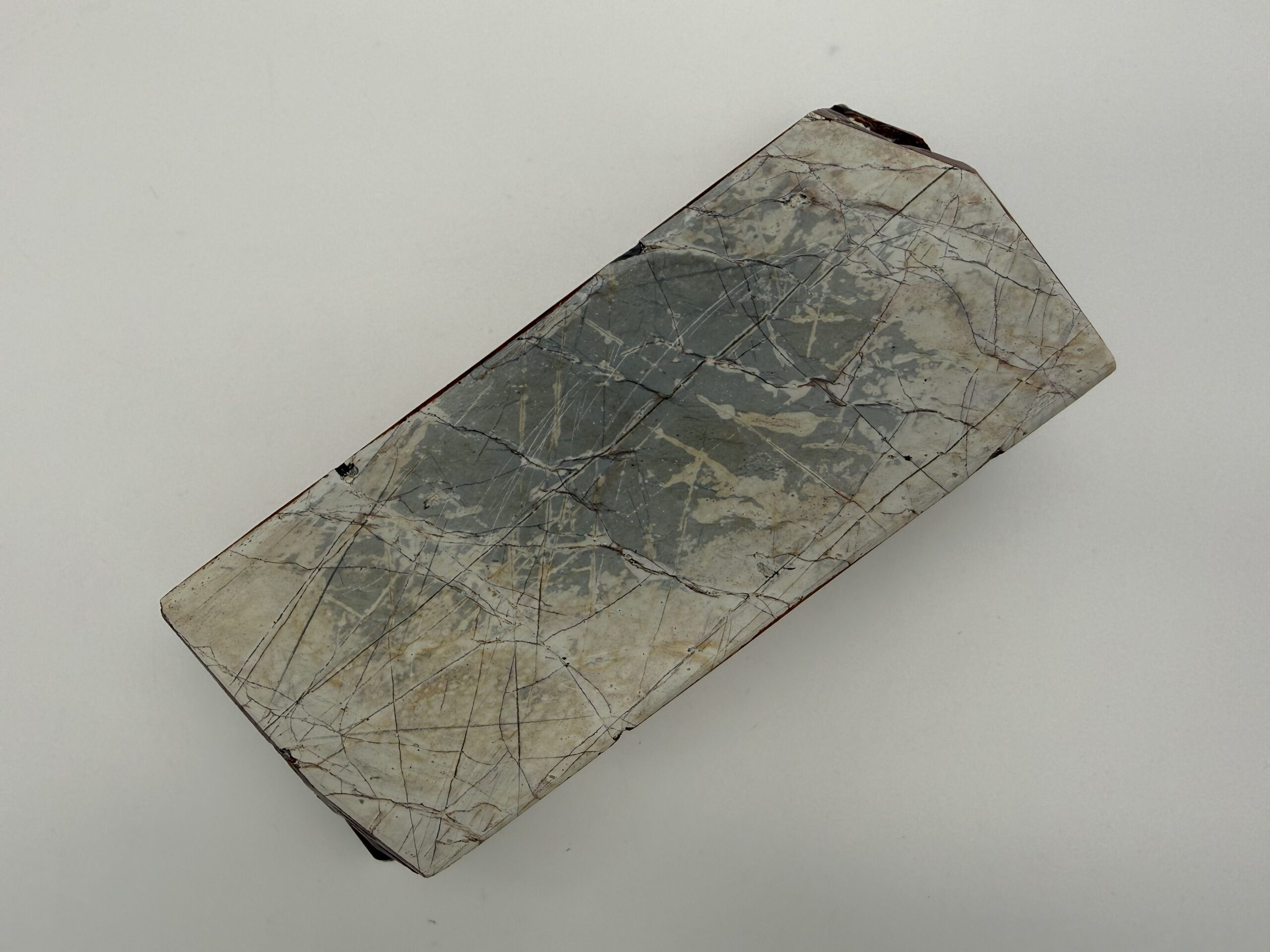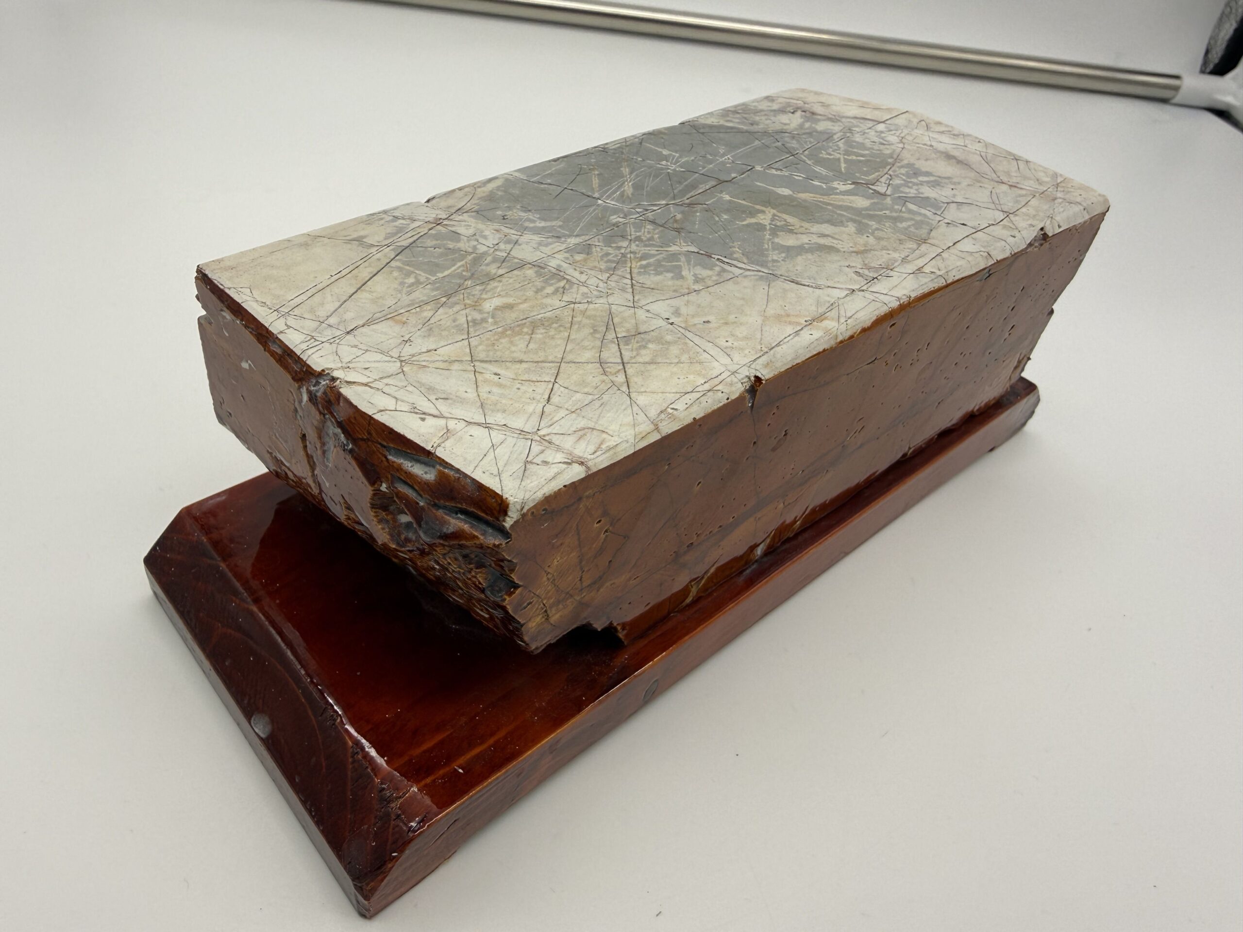 Kokybiškas Suita tipo japonišką natūralus galandinimo akmuo (JNATS – Japanese Natural Whetstone) iš Kioto regiono (Kyoto Suita / Shohonyama tipo sluoksniai).